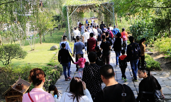 黃龍洞景區(qū)游客現(xiàn)錯峰潮